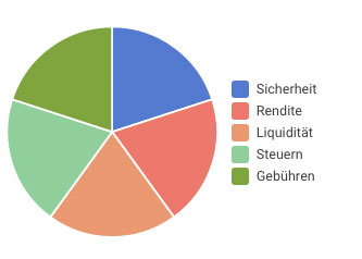 Natürlich gibt es nicht die “eine Lösung” für alle Anleger. Was für alle Anleger jedoch gilt: die Anlageberatung und die damit verbundene Auswahl eines Produktes sollte sich nach den Fragen der Sicherheit, Renditeerwartung, Liquidität, den Kosten und der steuerlichen Betrachtung des Investors ausrichten. In Abhängigkeit Ihrer Vorgaben finden wir für Sie den passenden Anlagemix, bestehend aus sicheren und kurzfristigen Sparprodukten, konservativen Anlagen und chancenreichen Investments. Damit Ihr Erspartes nicht weniger wird, sondern mehr. Dabei erfüllen wir alle rechtlichen Auflagen zur anleger- und objektgerechten Beratung, damit Sie Ihre persönlichen Ziele und Wünsche sicher erreichen.